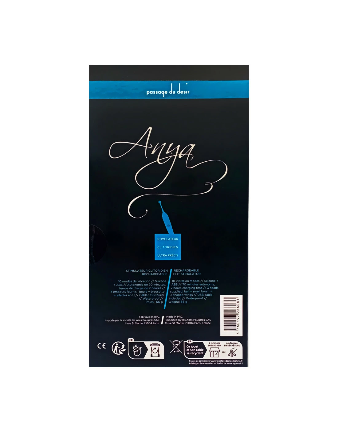Anya est un stimulateur clitoridien ultra précis : contrairement à un wand ou à un galet vibrant, il ne diffuse pas largement ses vibrations. Il se concentre sur l’essentiel, le gland du clito. Notez qu’il fait aussi beaucoup d’effets sur les tétons…