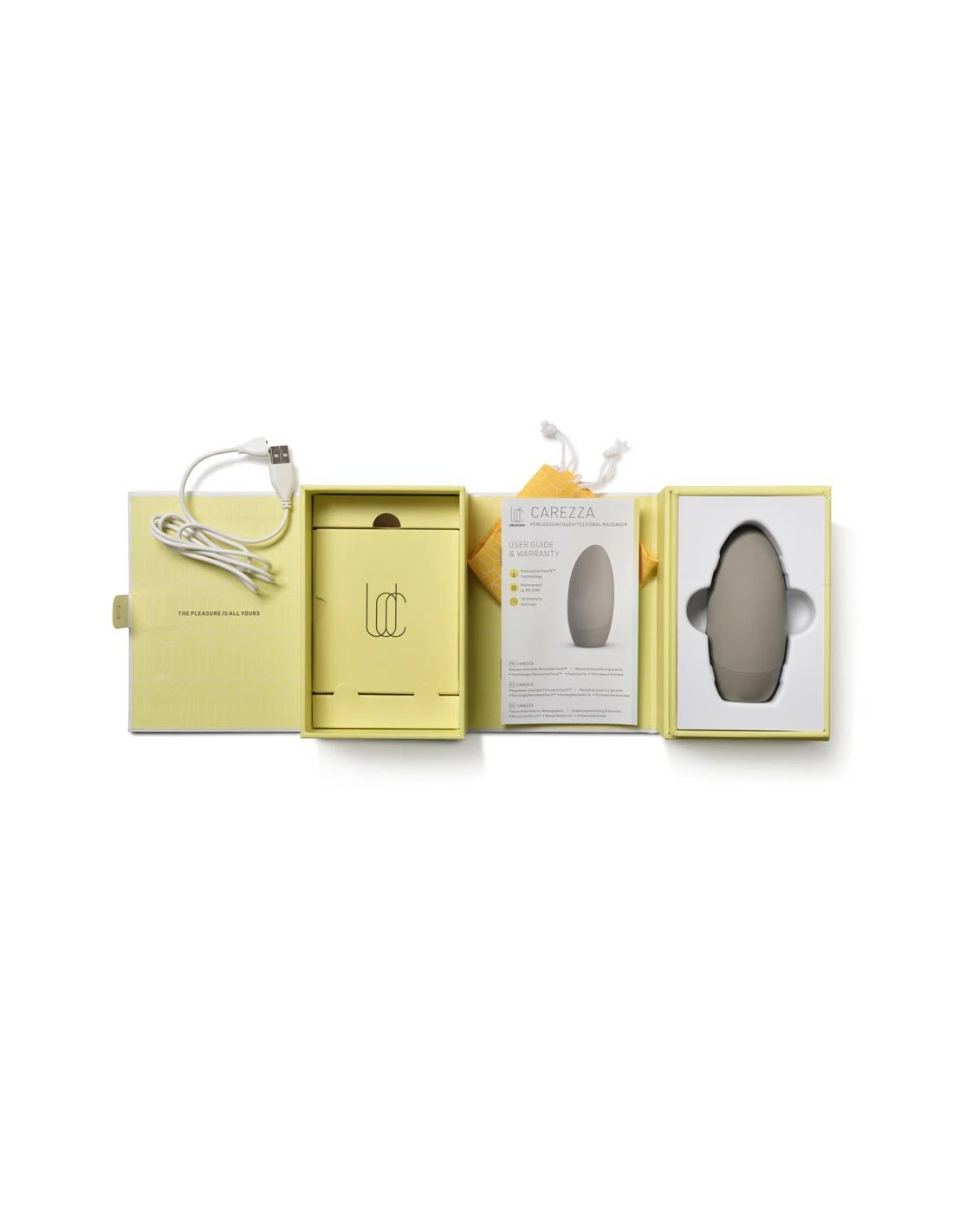 Avec sa forme douce et sa taille réduite, Carezza de Lora DiCarlo ressemble à un simple galet clitoridien. Et pourtant, il n’en est rien ! Cette merveille de microrobotique utilise en réalité une technologie bio mimétique, qui reproduit le mouvement d’un doigt tapotant en douceur le gland du clitoris. Sous le silicone soyeux du Carezza se cache une petite bille, qui « pulse » sur le gland du clitoris.