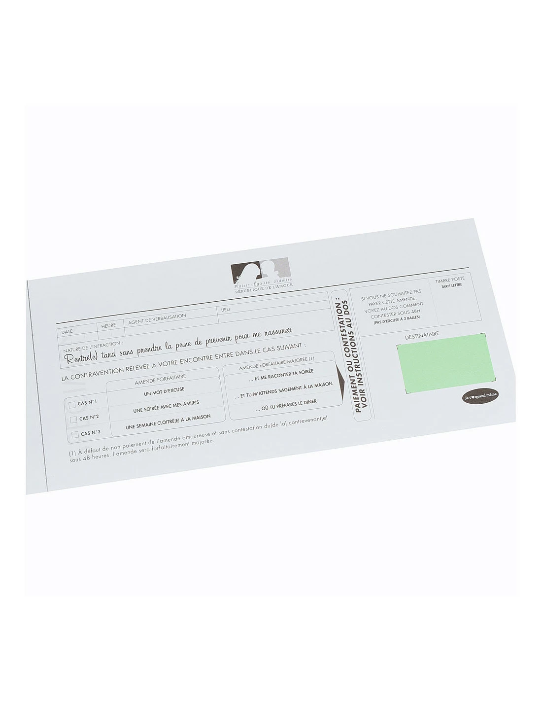 Ces petits soucis du quotidien finissaient la plupart du temps par de grosses disputes. Mais c’est fini grâce au Carnet de mise à l’amende amoureux du Passage du Désir.