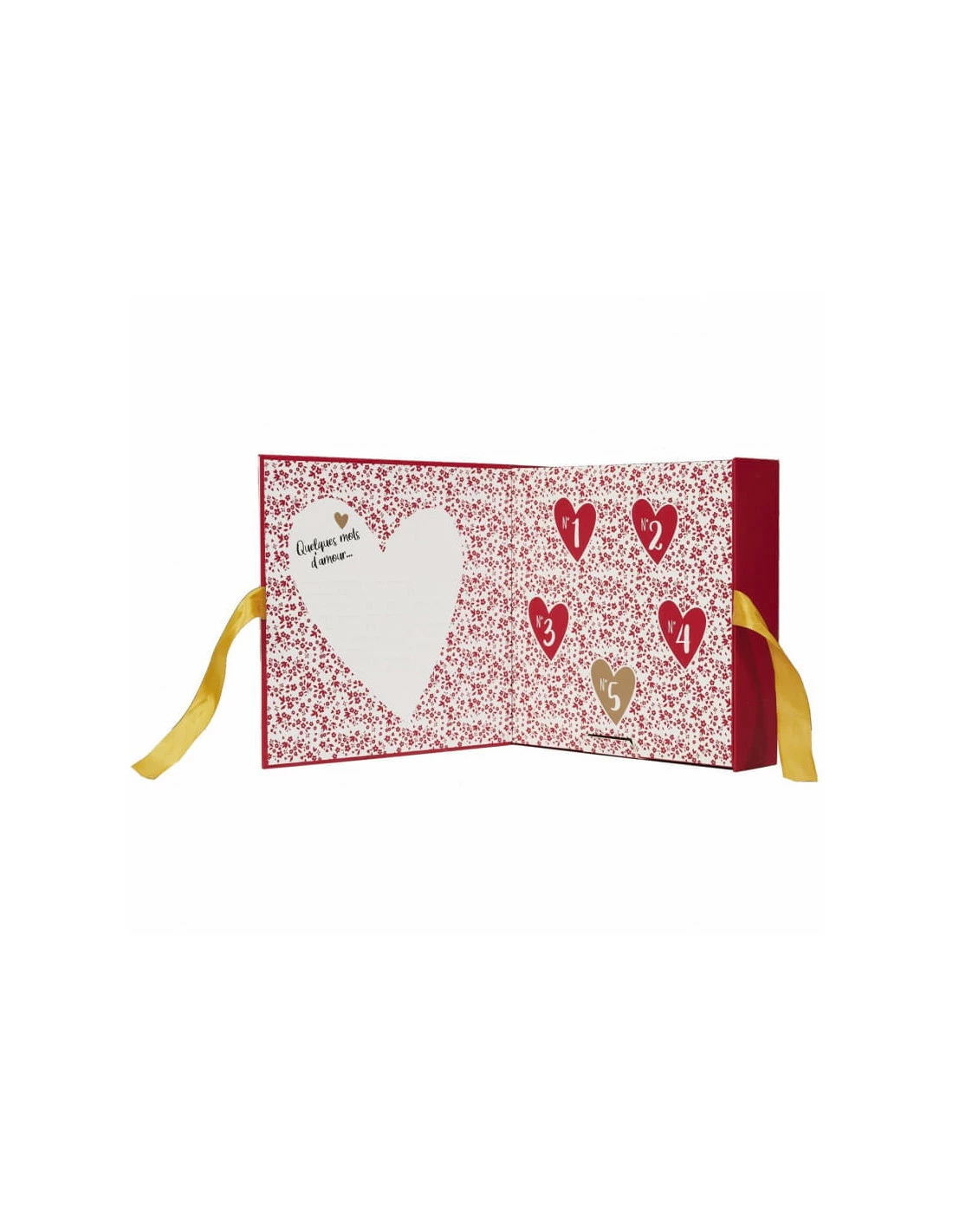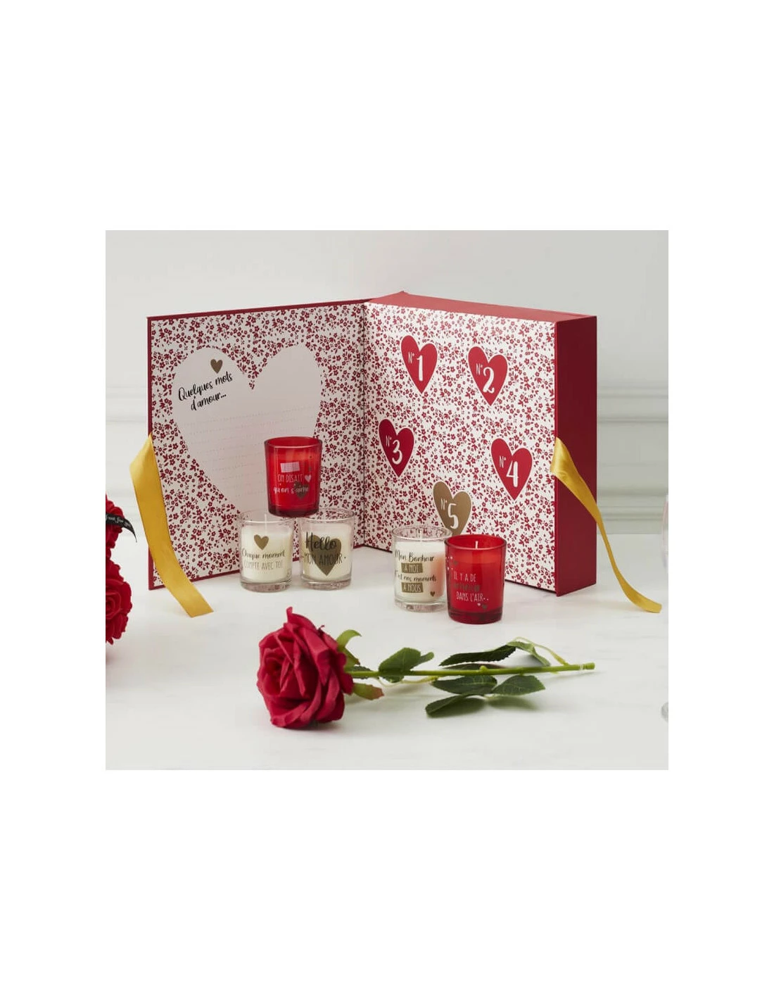 Fondez pour ce coffret calendrier romantique : 5 jours, 5 messages d’amour, 5 bougies pour créer une ambiance romantique.
