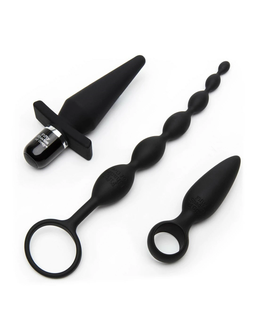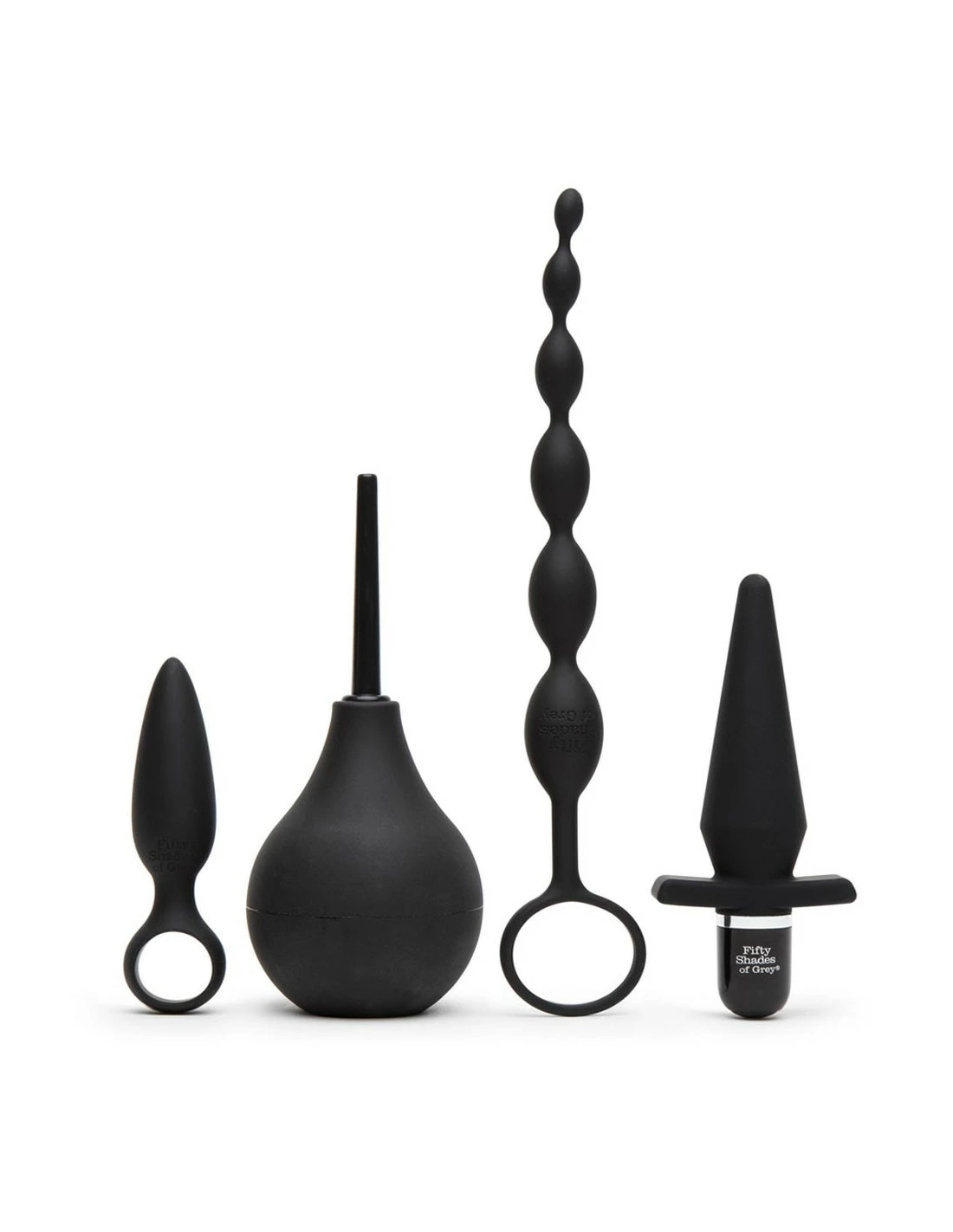 Découvrez les plaisirs anaux avec ces 4 jouets intimes pour débutants de chez 50 nuances de Grey. Laissez-vous submerger de sensations avec l’un des deux plugs inclus (classique et vibrant), ou profitez de nouveaux plaisirs avec des perles anales très soyeuses !