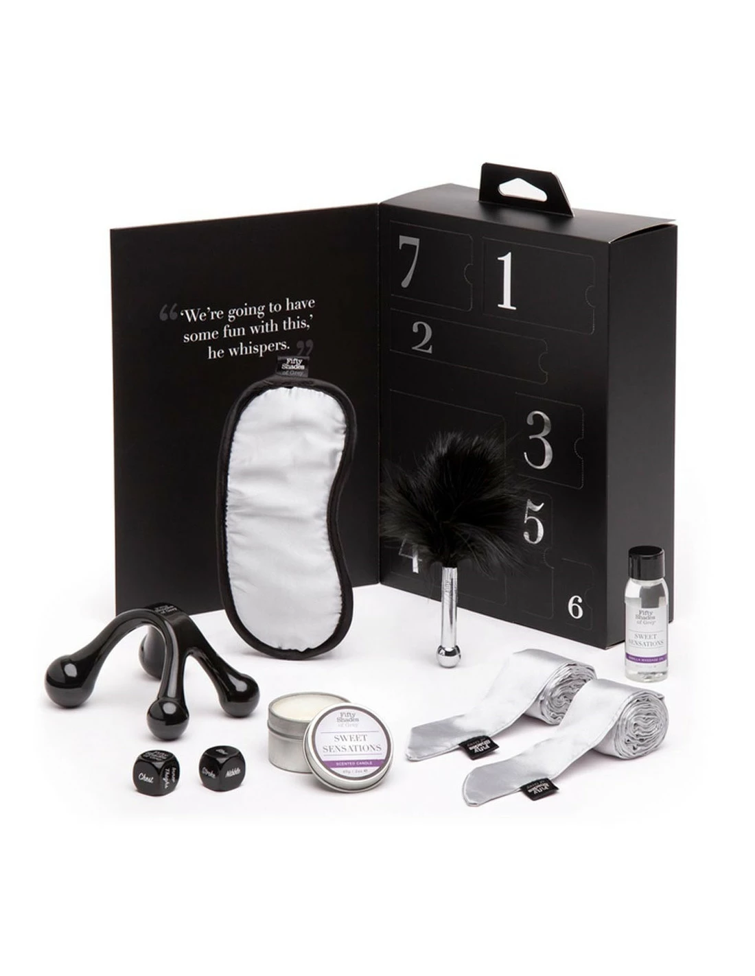 Ce jeu d’accessoires Sweet Sensations de 50 nuances de Grey vous permettra de commencer Ă crĂ©er votre propre salle de jeu.