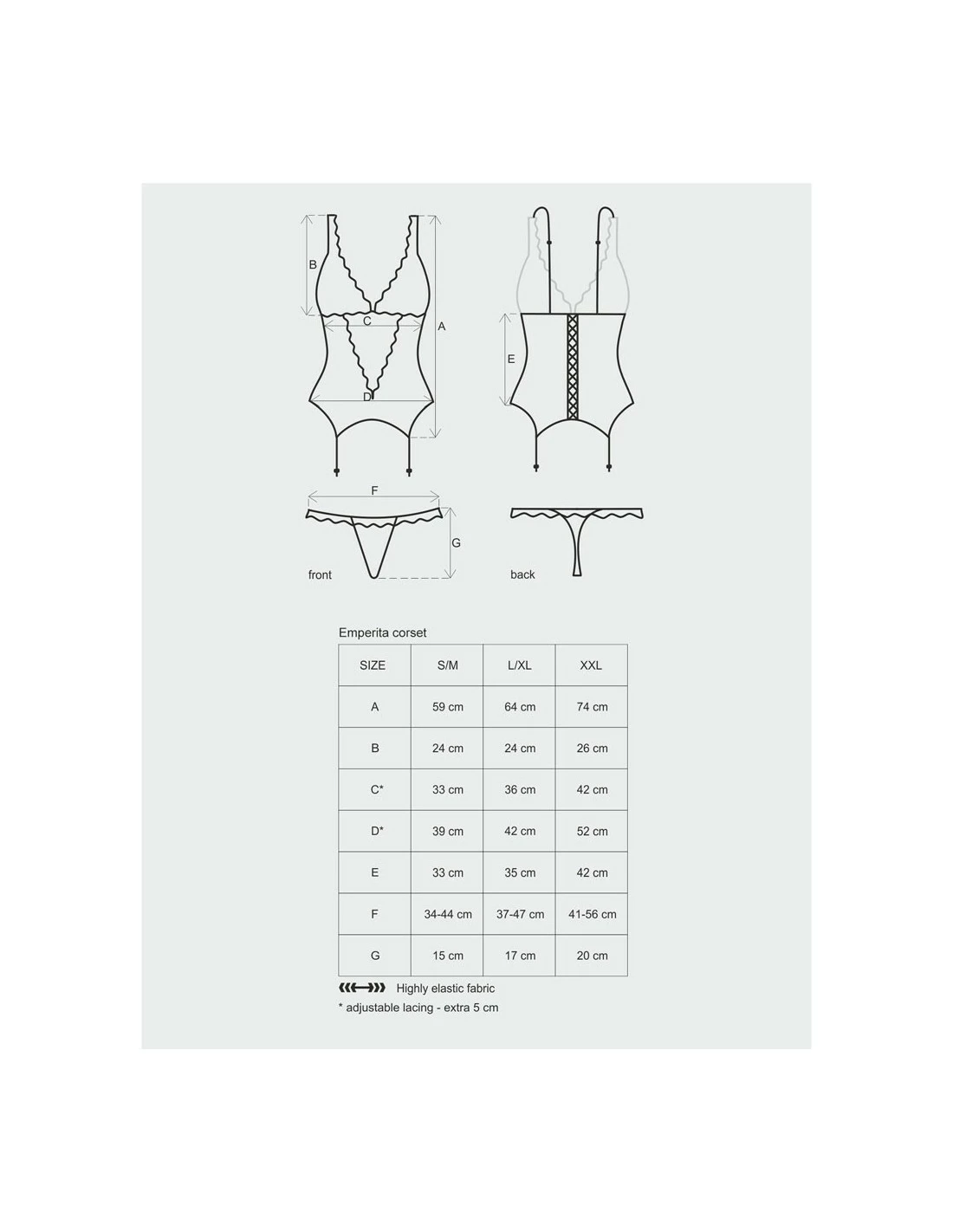 La magnifique guêpière Emperita est composée au milieu du ventre et sur la poitrine de dentelle noire en velours pour apporter du raffinement à la tenue. En plus des détails des plus sexy, vous découvrirez la partie porte-jarretelles au bas de la guêpière afin d’attacher vos bas. Dans le dos se trouvent des lacets pour accentuer la silhouette façon corset avec un jeu de matière transparente pour apporter de la subtilité. Les bretelles sont réglables pour un confort parfait. Le string en dentelle et velours vient quant à lui joliment compléter la tenue.