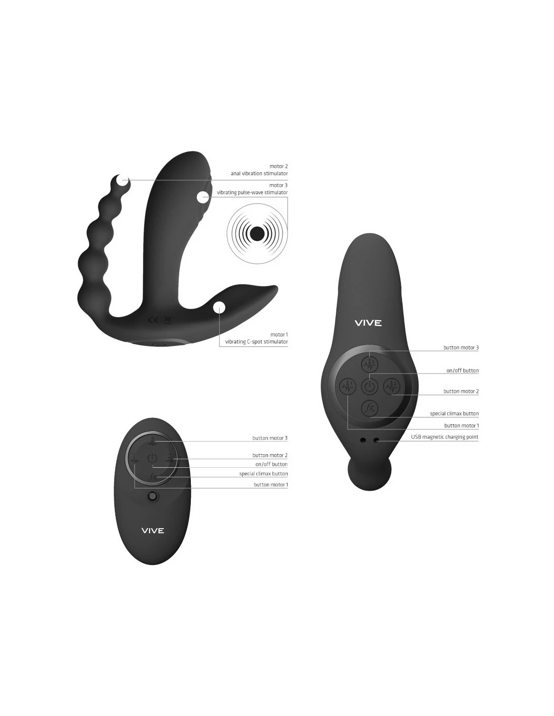 - La branche anale est un chapelet anal qui stimule en même temps l’anus en vibrant elle aussi.