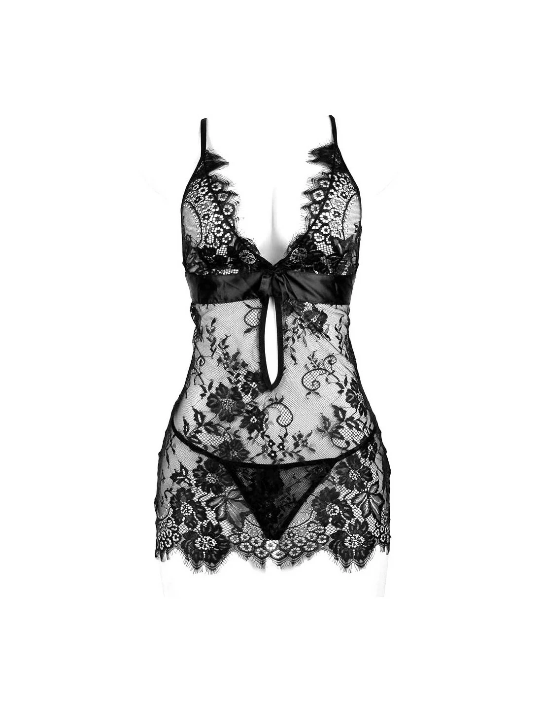 Raffinement, dentelle et transparence, sont les maîtres mots pour cette séduisante nuisette, qui saura sublimer vos courbes sans dévoiler toutes vos cartes.