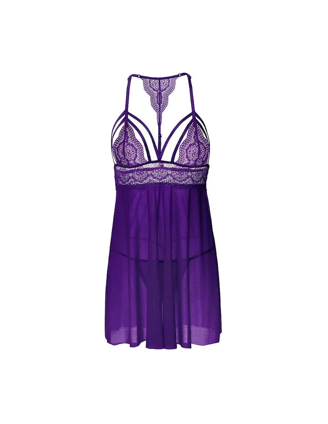 De couleur pourpre, elle incarne à la perfection l’élégance et la séduction. Les bonnets sont ornés de dentelle délicate et de lanières fines, tandis que le voile semi-transparent révèle subtilement votre silhouette. La dentelle enveloppe délicieusement votre buste, et à l’arrière une bretelle unique met en valeur vos épaules, tandis qu’une ravissante dentelle orne le haut de votre dos.