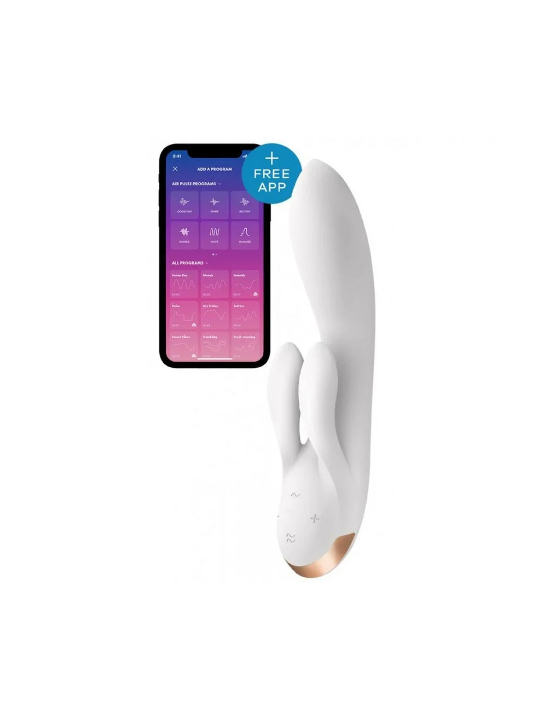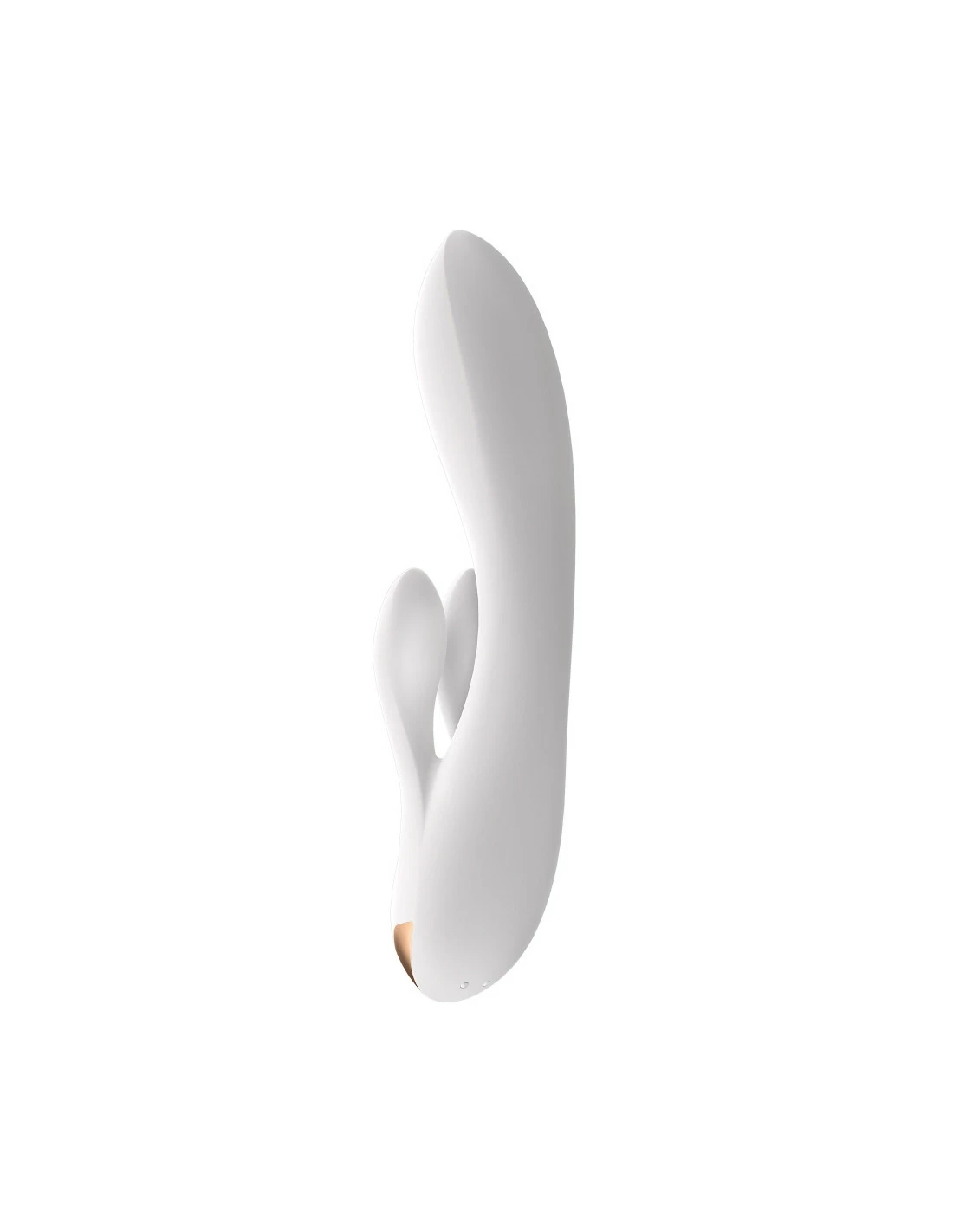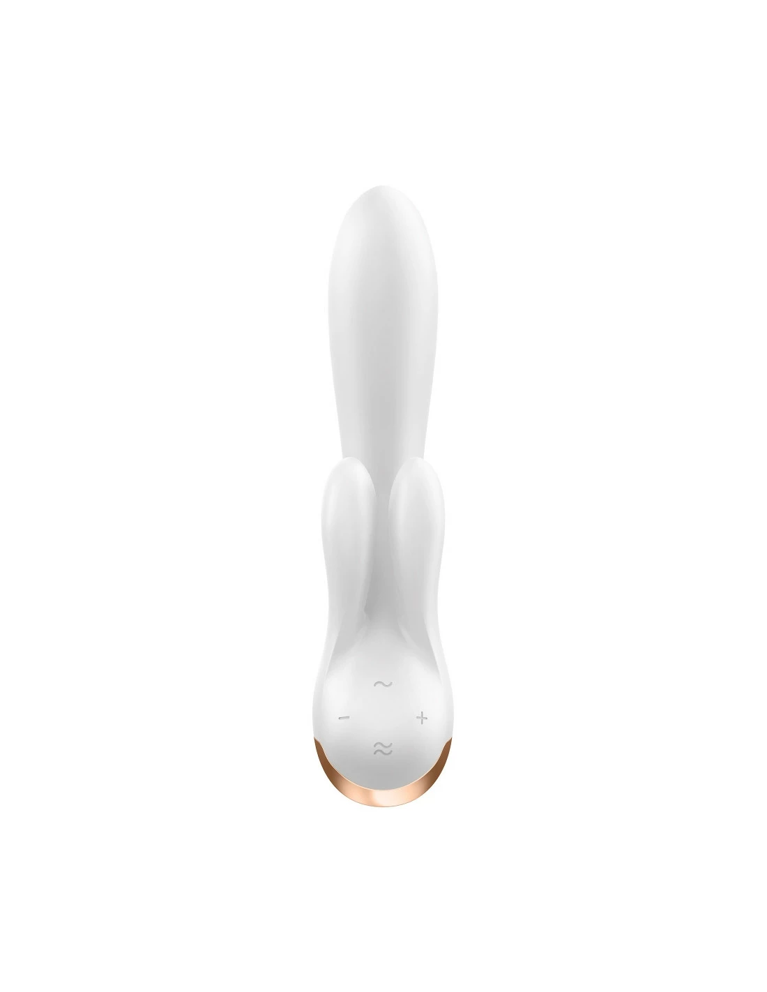 Le rabbit Double Flex de Satisfyer se distingue grâce à ses deux tiges externes destinées à une stimulation clitoridienne large et intense. Elles viennent reposer sur les lèvres et de chaque côté du gland clitoridien. Elles surexcitent indirectement le clito avec les moteurs positionnés dans chacune des petites tiges. Ainsi vous ressentez parfaitement les vibrations, tout en limitant le phénomène d’engourdissement, conséquence courante d’un contact direct.