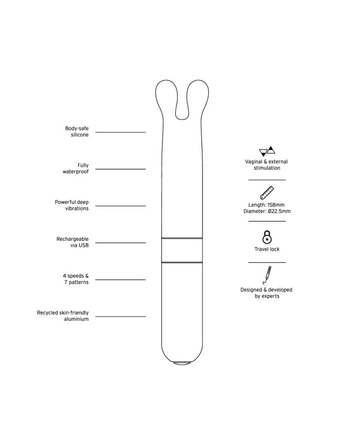 Côté sensations, Laska sait aussi se distinguer. Son format compact (15,8 cm) n’empêche pas des vibrations très « punchy », puissantes et profondes. Sa tête est inspirée du cultissime lapin, dont les oreilles frétillantes et souples sont spécialement sculptées pour entourer le clitoris. Faites des détours par d’autres zones érogènes (lèvres, tétons,…), à moins que vous préfériez atteindre l’orgasme très rapidement…