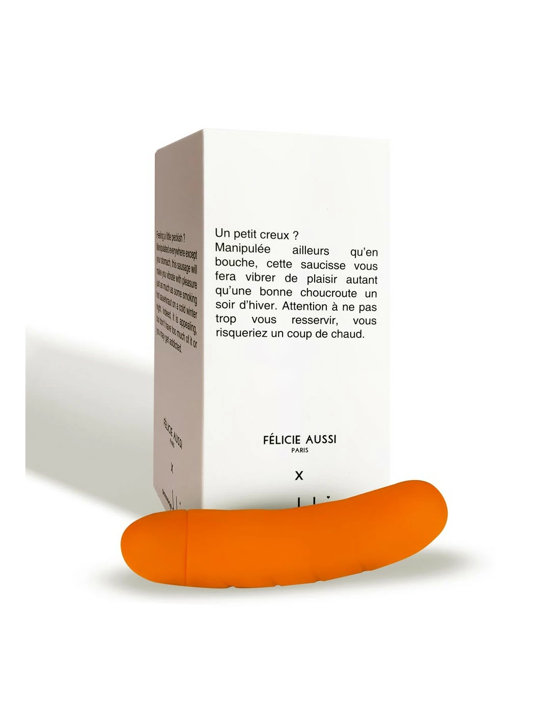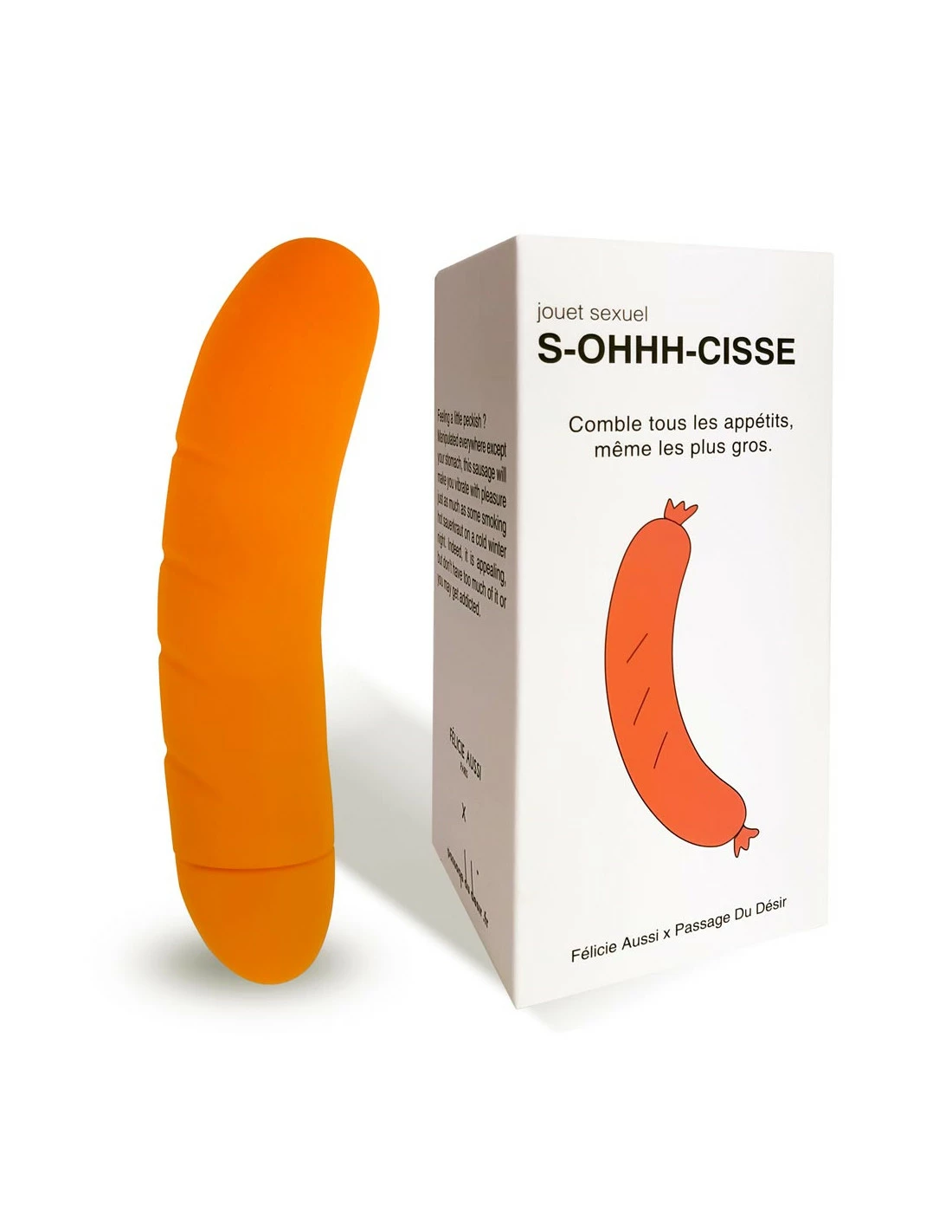 Pourquoi les sextoys devraient-ils être tous pareils, tristes, alors qu’ils sont destinés à nous faire du bien ? C’est pourquoi Félicie Aussi, la marque des paillettes, des fous rires et des bisous, s’est associée au Passage du Désir pour créer The Saucisse, S-OHHH-CISSE pour les intimes. 12,5 cm de pure saveur, orange flashy, 4 stries, du pur bonheur buccal clitoridien !